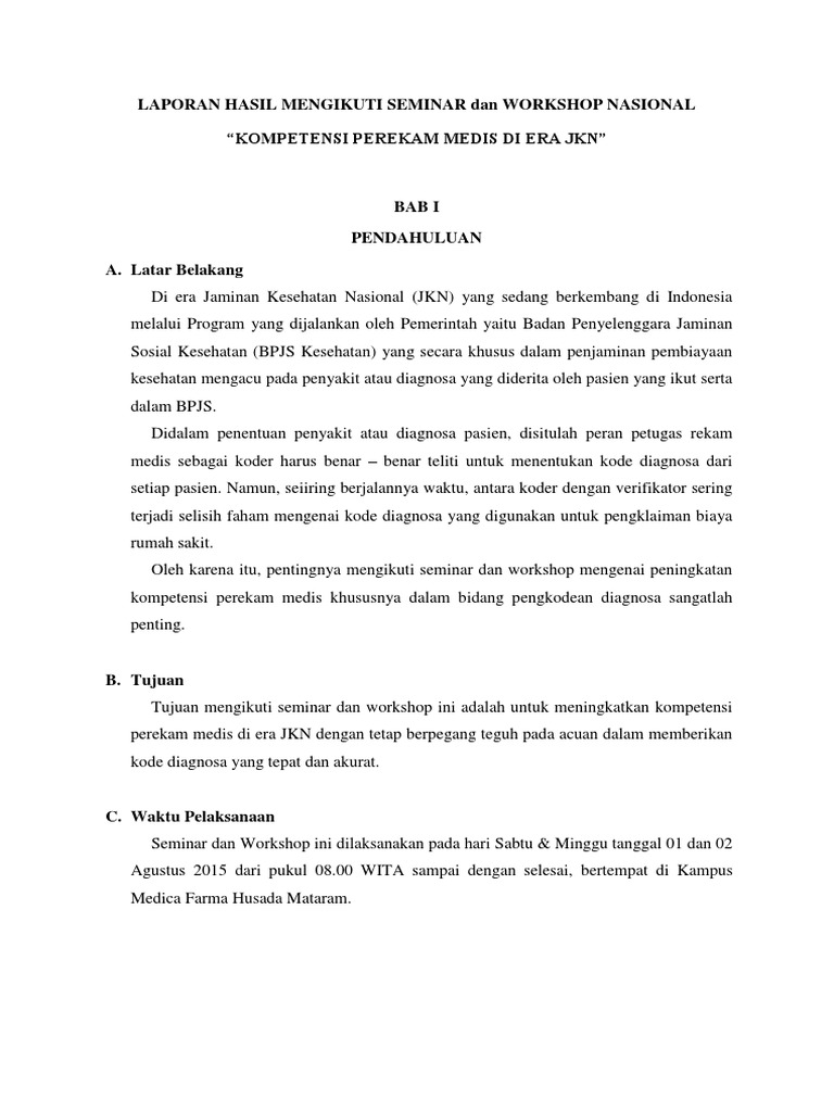 Laporan Hasil Mengikuti Seminar Dan Workshop Nasional Pdf